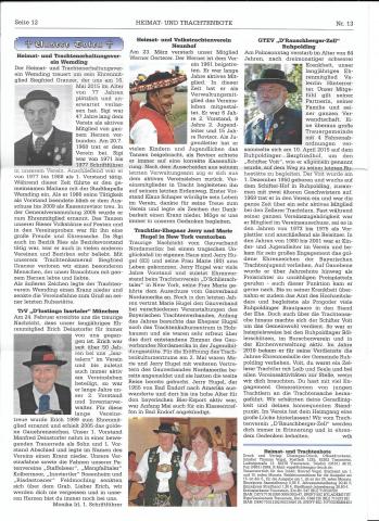 The July 1, 2015, issue of the Bayerischer Trachtenverband's Heimat- und Trachtenbote had a nice memorial write-up about Jerry & Marie Hugel of Schlierachtaler Stamm, NY. The couple certainly made their mark throughout the Bavarian community!