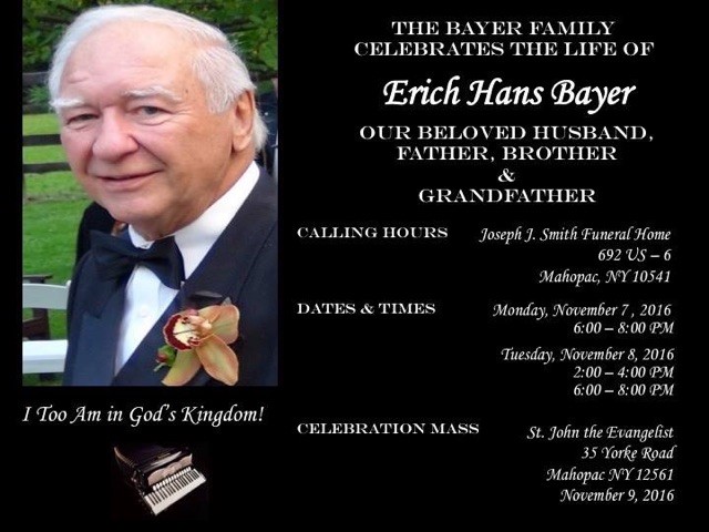 Erich Bayer, our Ehrengauvorplattler, passed away on November 4, 2016. Erich was elected our 2.Gauvorplattler on January 10, 1976, and then elected 1.Gauvorplattler two years later, on January 14, 1978, and remained in that capacity for eight years. Erich was named Ehrengauvorplattler at an Executive Board Meeting on March 1, 2003. Although on the Executive Board for only a relatively short time, his impact on our Gauverband was deeply felt.
