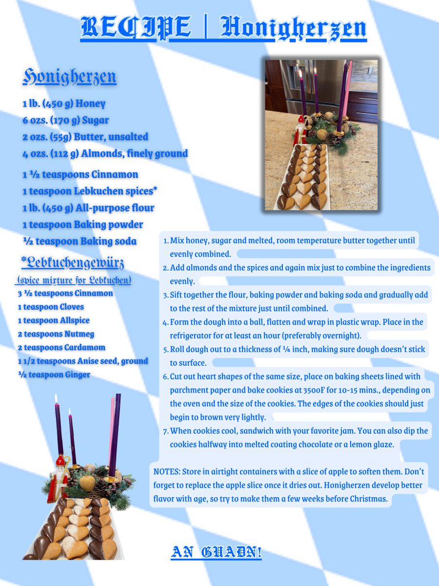 There's a new YouTube video available on the Gauverband's channel. Rick Michels shows us how to make Honigherzen, a delicious cookie that is especially popular at Christmas time.  The link to the channel and the recipe are available if you go to gauverband.com/resources/workshops. Yes, we're a little past Christmas but honey heart cookies are good for Valentine's Day and anytime you want a treat!