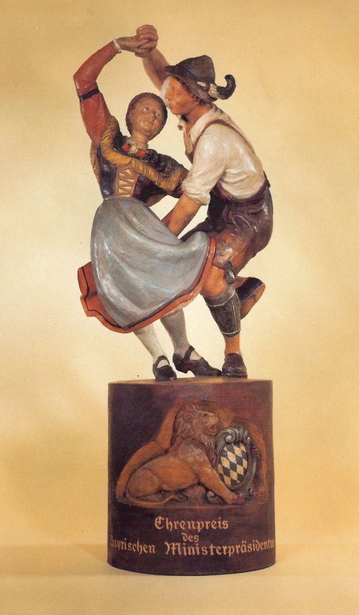 Einzelplatteln results are announced on Saturday night. For each age group, the individuals taking the first three places are awarded medals. Everyone must wait until early afternoon of Sunday's picnic when the first five places of Gruppenpreisplatteln are announced, from fifth up to first. After each is announced, the group performs its dance once more, receives its prizes, and returns to the congratulations of the others in their Verein. Every Preisplatteln participant, regardless of place, receives a metal participant's pin.