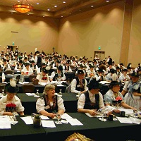 DELEGATES MEETINGSEvery two years, in the “even” years, Gauverband Nordamerika holds its meeting of the member Vereine. The meeting is held the weekend containing the first Sunday in May and is hosted by a Verein from the Gauverband at a site selected at the previous Delegates Meeting (unless approved otherwise by the delegates). It is attended by up to two delegates plus alternates and observers from Vereine throughout the Gauverband. The weekend consists of a meeting of the Ausschuss (Executive Board) on Friday, general sessions for all delegates on Saturday and Sunday, an administrative session, and a Vorplattler meeting. Workshops are conducted on cultural subjects, and a dance workshop is held on Saturday night. On Sunday, the delegates vote on site selection for the next Delegates Meeting and the Gaufest that is three years away. Election of Gauverband officers (Ausschuss) is also conducted. About 200 people (delegates, alternates, and observers) attend the meeting. The meeting minutes for the last nine meetings are shown below, and they include the minutes of the Friday Ausschuss meeting, minutes from the General, Administrative, and Vorplattler meetings, and all the committee, officer, and workshop reports presented at the meeting. In 2020 no in-person Delegates Meeting could be held because of the COVID-19 pandemic. Instead, the most urgent and time sensitive business of the Gauverband was handled at a special virtual meeting of the Executive Board. In 2022 the Delegates Meeting and Gau-Ausschuss Meeting were again held virtually. The 2024 meetings were held in Newark, Deleware, hosted by the Enzian Volkstanzgruppe at their Vereinsheim.